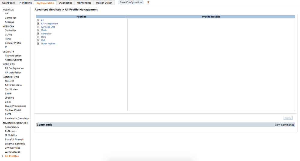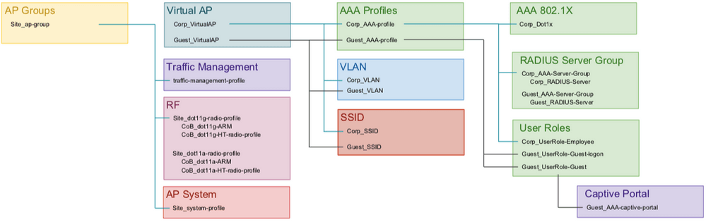 每个人都有自己的偏好,但我发现在个人资料名称本身中保留配置文件类型非常有用。例如,如果我想配置“AAA配置文件”,我会将其命名为“site_aaa-profile”。它允许我快速分析配置并减少在创建依赖项时所做的错误次数。如果您希望使用CLI配置控制器,这尤其如此。