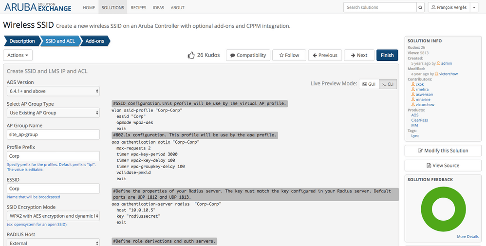 另一种替代方案是使用Aruba提供的在线工具,称为Aruba Solution Exchange:https://ase.arubanetworks.com/