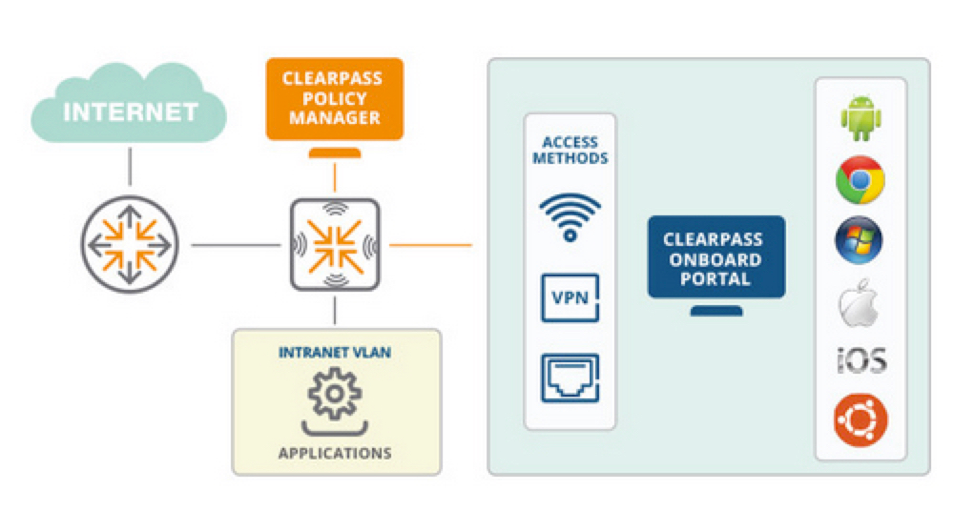 ClearPass有一个内置的证书颁发机构(CA),它授权IT人员可以轻松地创建和部署BYOD工作流,以便被授权的员工和承包商可以在安全的网络上使用他们的设备。ClearPass提供Windows, MacOS X, iOS, Ubuntu, Chromebook和Android设备上的安全登录。