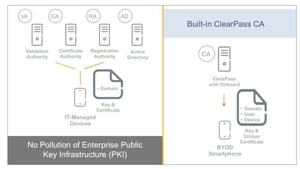 有了Aruba ClearPass,我们可以管理身份管理进程,无需设置PKI。让我们看看如何简化这个过程。