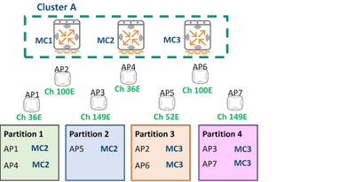 On the controller side, the upgrade process pushes the new code revision to all controllers in the cluster and reloads the controllers one at a time. Once a controller has rebooted, it forms its own cluster temporarily and all APs that are set to use it as their target controller are rebooted for upgrade. This process continues until all controllers are upgraded, at which time the initial cluster architecture is restored.