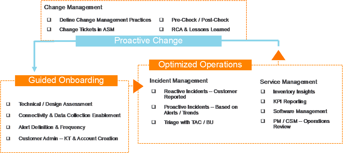 除了CSM之外,智能操作还意味着Aruba专家正在积极决定这家公司的网络。例如,并非所有软件版本都应该应用于每个环境。通过这项服务,Aruba Noc具有对公司网络的深刻了解,使该决定,避免任何可能发生的停机或问题。如果发生了任何问题,Aruba Noc对Aruba技术辅助中心进行了快速分辨率的故障排除。请注意,该公司必须购买阿鲁巴的基金会护理为了参与智能运营服务,因此支持每个设备的服务SLA遵循公司购买的支持合同。