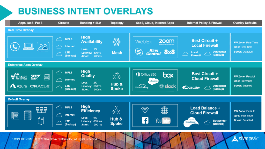 连接性很容易建立,策略只使用业务意图覆盖层进行委派。关键任务应用程序可以得到优先级和保护,可以很容易地优化到SaaS服务的路由,可以很容易地添加云交付的安全服务,如Check Point Software、Netskope、Palo Alto Networks和Zscaler。SD-WAN为将分支用户连接到网络提供了简单的机制,并且它提供了一种简单的机制来将它们进行全局连接,而不会牺牲性能或可靠性。