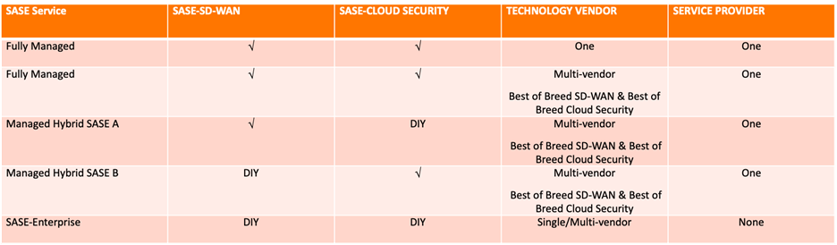 图1. SASE部署选项。检查标记=管理;diy =做你自己
