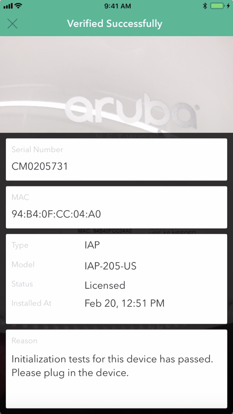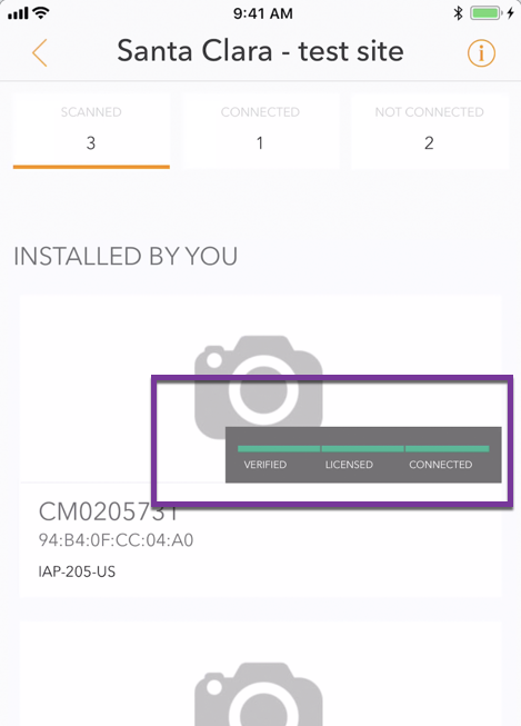Network admin sees status of the device change to “connected” once it is successfully installed by installer.