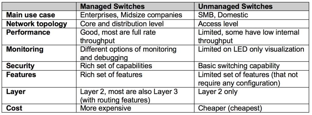 Note that I haven’t considered the Software-Defined Networking (SDN) switches that are targeted only for some enterprises and have a more complex management (and control) layer.