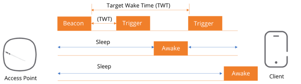 2.改善了电池寿命和节能。11AX增强了访问无线介质的特定时间在AP和客户之间协商的功率节省机制。在新目标唤醒时间(TWT)功能的帮助下,客户知道何时轮到他们通过触发机制传输,该机制在预先谈判的时间唤醒了客户。使用TWT,客户之间的介质的争夺减少了,因此,几个试图同时传输的用户之间的重叠率要少得多。Wi-Fi客户的睡眠时间增加了多重。