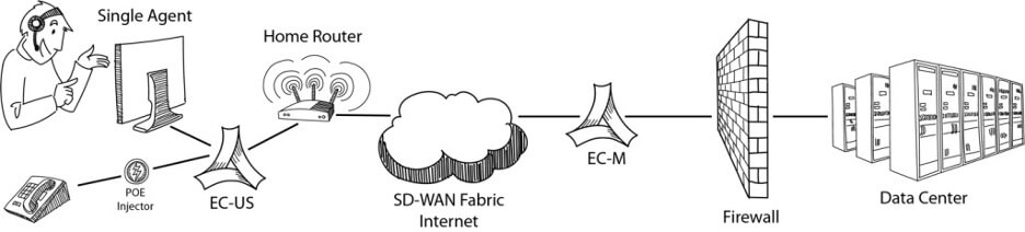Unlike traditional PCs or even thin clients, a zero client contains an extremely limited set of compute and software options. Most do not run a traditional OS, but simply contain firmware programmed to point the client towards a data center server. In a normal branch or call center, the zero clients are connected to a trusted LAN. The call center will likely then have one or more high-speed WAN links for connectivity to the data center. This configuration is straightforward for IT staff to deploy; while maintenance and patching tasks are simplified. However, when the workforce is mandated to decamp traditional office settings and begin working remotely from home offices these former benefits pose a new challenge: How to extend a LAN-like high quality of experience network into employee homes?