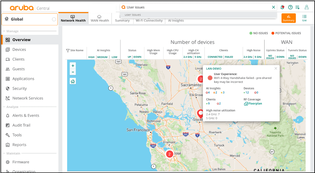 与Aruba Central无缝集成,客户可以登录到UXI仪表盘,并直接从Central访问UXI洞察。UXI和Aruba Central的结合允许端到端的网络视角,UXI提供从用户角度的网络洞察,而Central则覆盖网络视角方面。