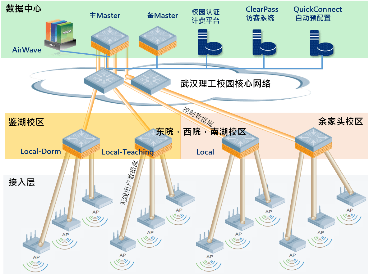 自2012年武汉理工大学开始建设校园无线网以来,随时随地的无线网络受到了广大师生的热烈欢迎。因此学校逐步增加投入。无线网络规模也由起初的一千余颗AP逐步增长到近六千颗AP,高峰时的在线人数由数千达到超过两万。那么如此的大型无线校园网络建设有什么绝招呢?