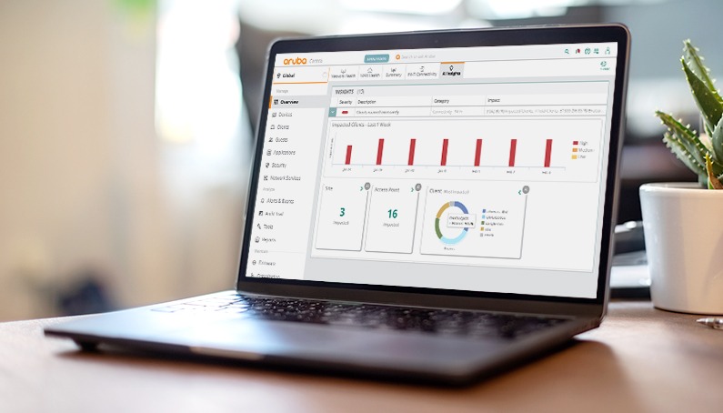A cloud-based networking solution with AI-powered insights, workflow automation, and edge-to-cloud security that empowers IT to manage and optimize campus, branch, remote, data center, and IoT networks from one dashboard.
